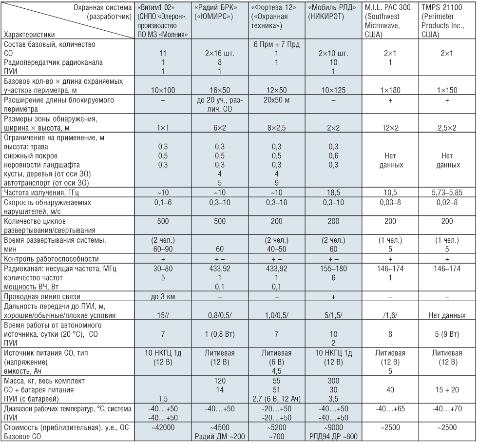 Коммерчески доступные разведывательно-сигнализационные ОС предназначены как для решения различных военно-полицейских задач, так и для временной охраны гражданского имущества, организации скрытных или малозаметных охраняемых рубежей на подступах к жилищу, складу и т.д. ТТХ наиболее известных ОС гражданского или двойного назначения приведены в табл. 1.